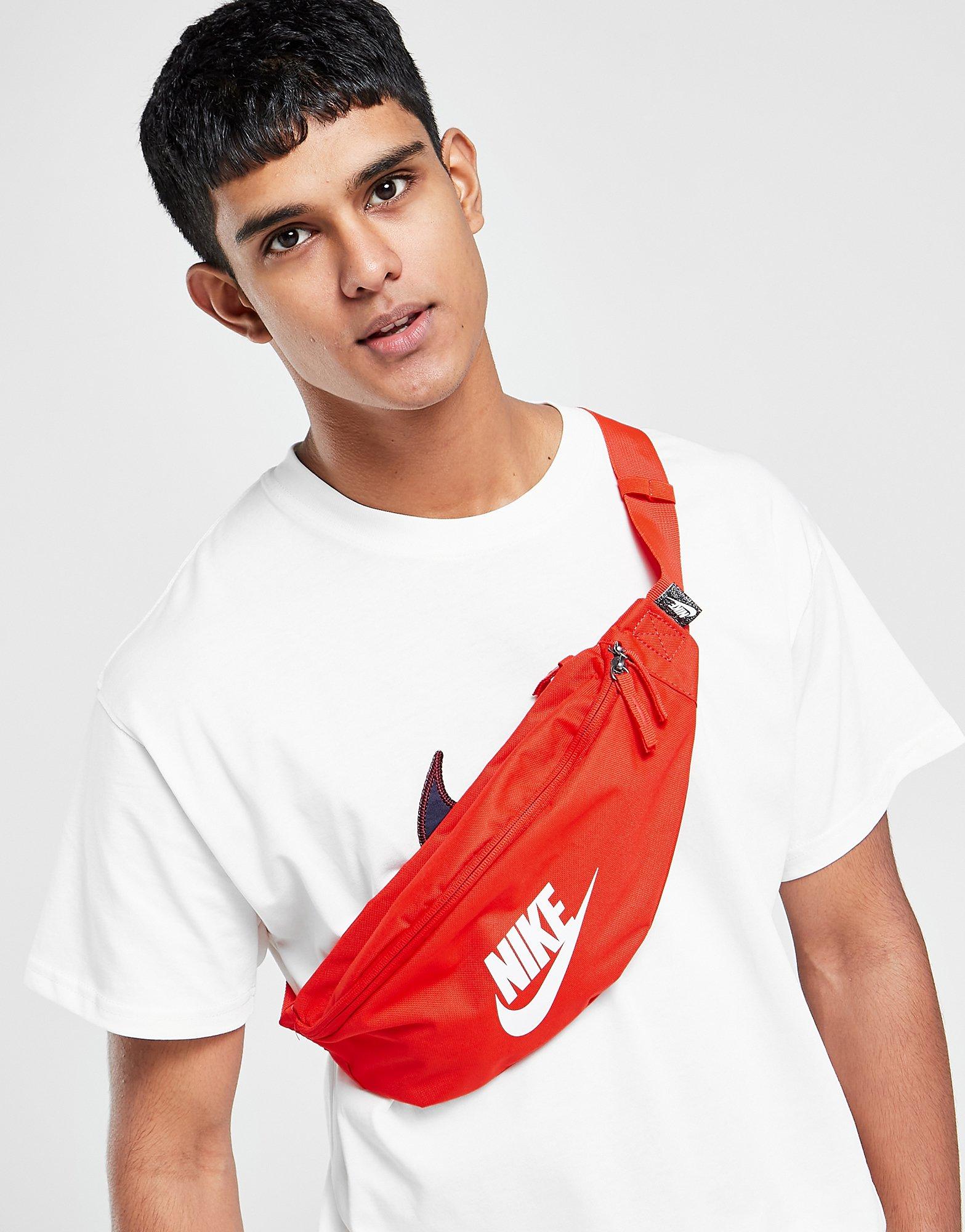 Miej wszystkie drobiazgi zawsze przy sobie dzięki nerce Heritage Hip Bag od Nike. Wykonana z trwałego nylonu, posiada zapinaną na zamek główną przegrodę, w której bezpiecznie przechowasz niezbędne przedmioty. Regulowany pasek umożliwia indywidualne dopasowanie. Całość utrzymana w czerwonej kolorystyce i sygnowana legendarnym logo Nike Swoosh. Czyścić miejscowo. Wymiary: 15 cm x 40,6 cm x 10 cm