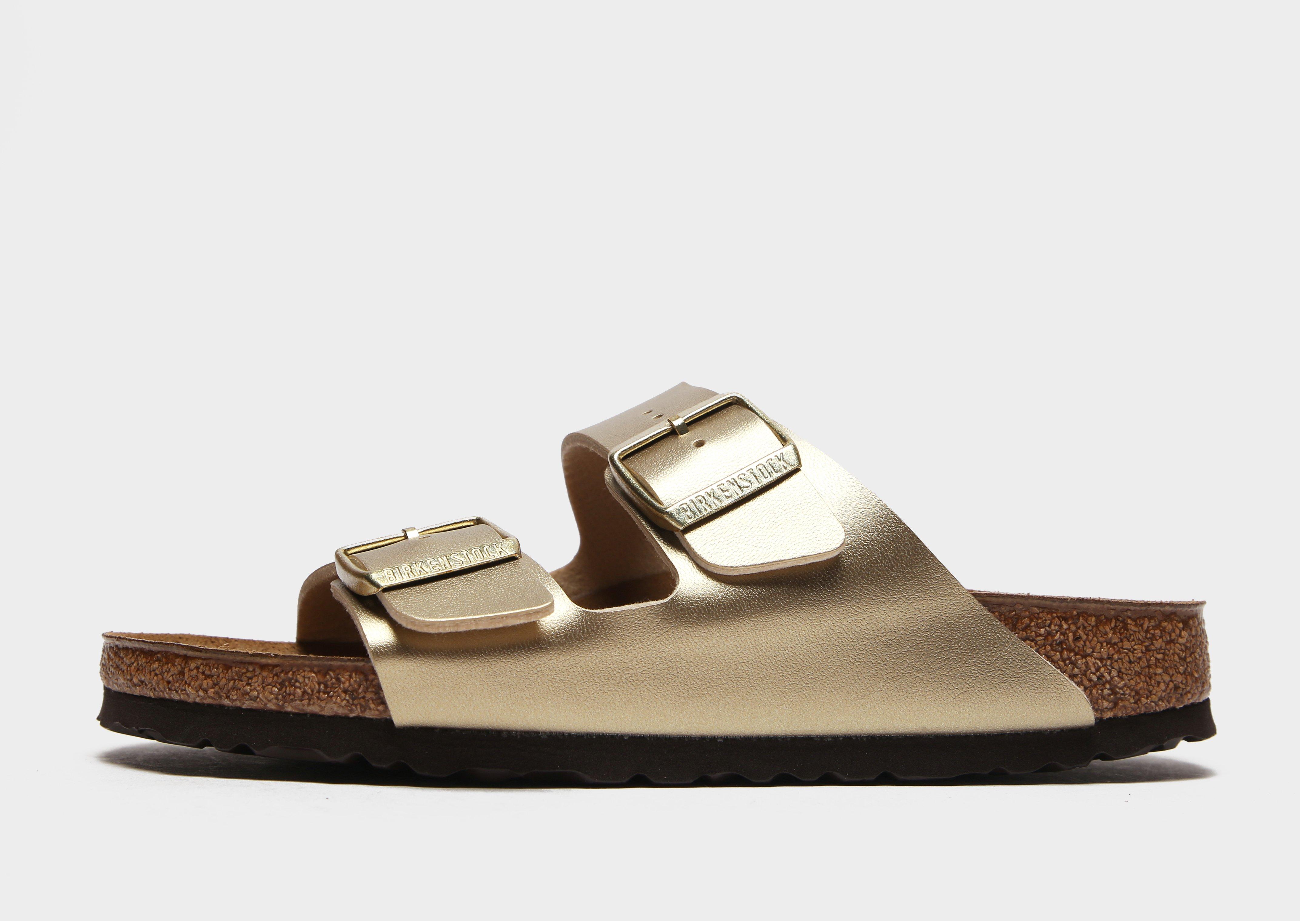 Tego lata postaw na odważny look w formie sandałów Arizona od Birkenstock. Klasyczny model w brązowo-złotej kolorystyce ma syntetyczną cholewkę Birko-Flor oraz dwa wytrzymałe paski z klamrami regulacyjnymi. W projekcie znalazła się profilowana wkładka z korka i lateksu wykończona przyjemnym w dotyku zamszem. Za komfort noszenia odpowiada amortyzowana podeszwa środkowa z pianki EVA, a teksturowany bieżnik gwarantuje świetną przyczepność. Sandały wieńczy branding Birkenstock na ścianach bocznych, klamrach i podeszwie.