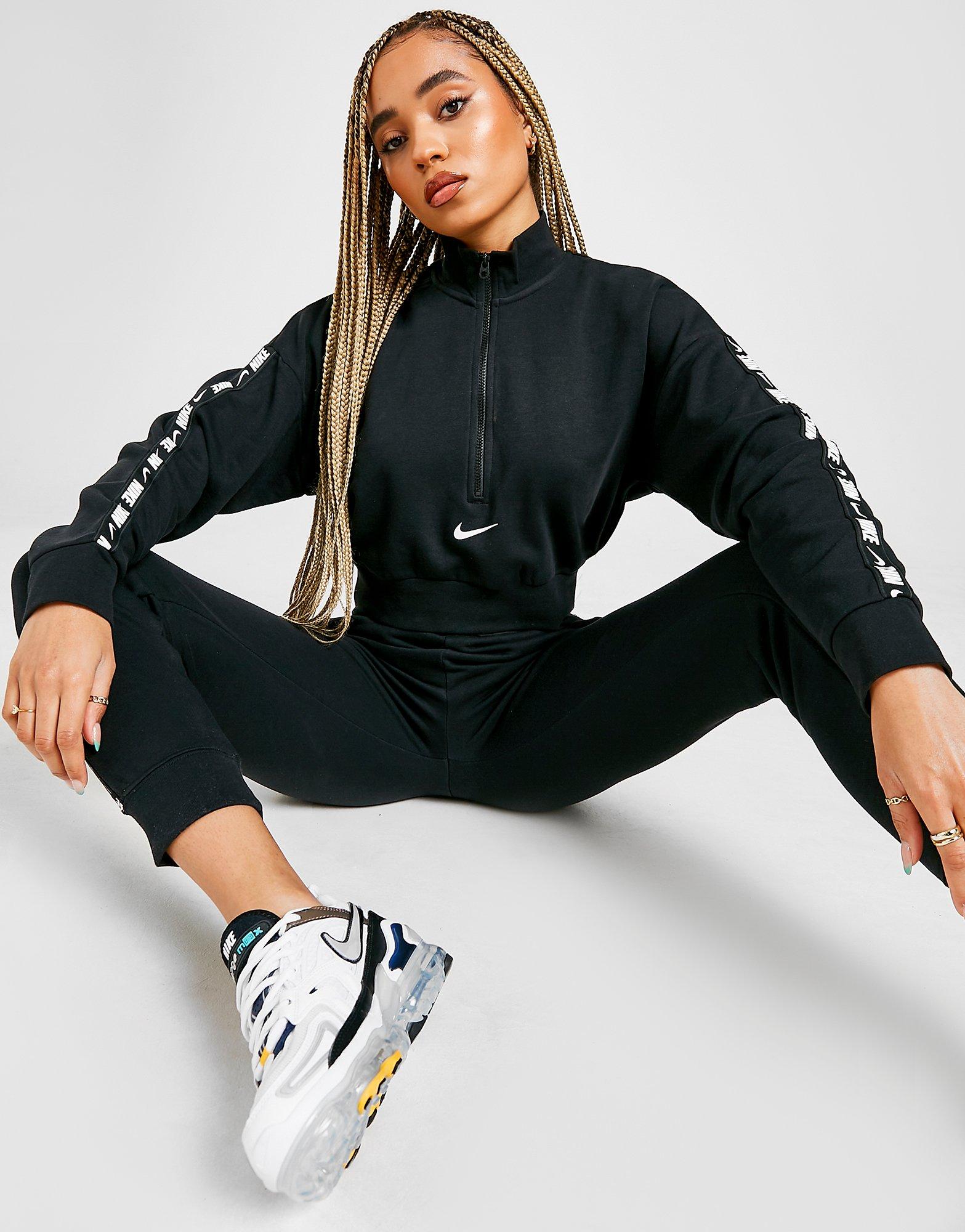 NIKE BLUZA Z KAPTUREM TAPE LOGO 1/4 ZIP CROP TOP